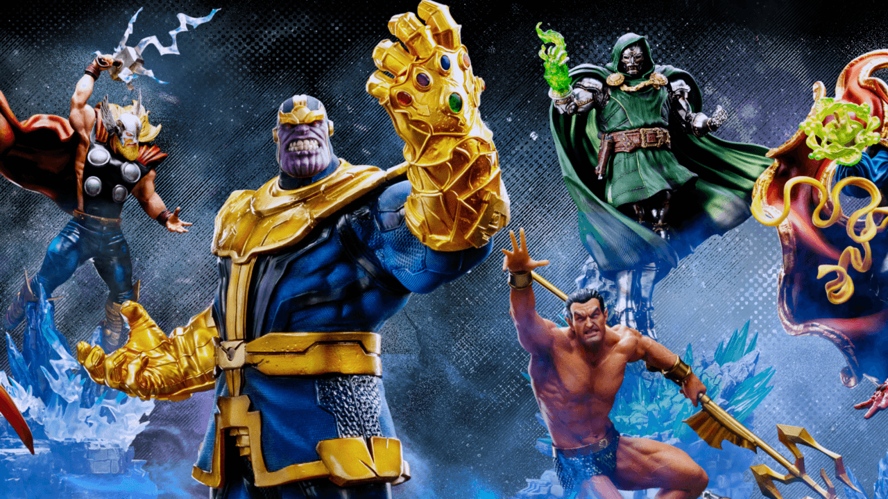 The task was to take a specific collection — whether Marvel, Disney, TMNT, or Masters of the Universe — and design a carousel that flowed horizontally across multiple slides. Each statue needed to shine on its own, while also being part of a cohesive, immersive composition that felt true to the characters and the universe they belong to.